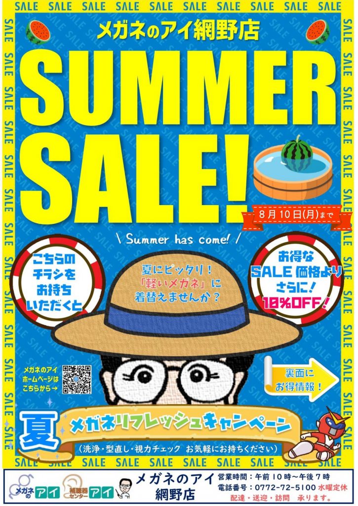 京丹後市網野町にありますメガネのアイ網野店です。 本日7月2日より、サマーセール開催いたしますっ°˖✧◝(⁰▿⁰)◜✧ ☆*。。。*☆*。。。*☆*。。。*☆*。。。*☆*。。。*☆SUMMER SALE !☆*。。。*☆*。。。*☆*。。。*☆*。。。*☆*。。。*☆ 当店売れ筋国産フレー... -