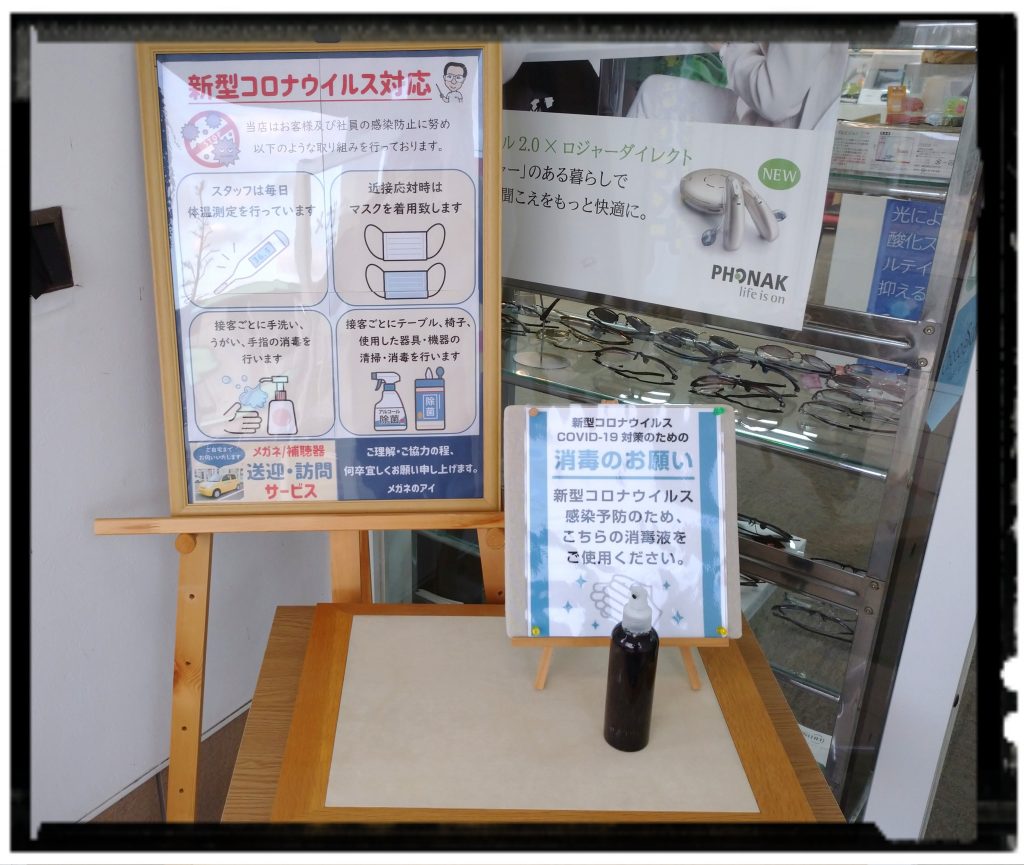 豊岡市出石町福住のメガネのアイ/補聴器センターアイです。コロナ対策の一環として店舗入り口に消毒液を設置しております。ご来店の際は『手の消毒』にご協力ください。宜しくお願いいたします。 電話 0796-52-7811 営業時間10:00~午後7:00水曜... -