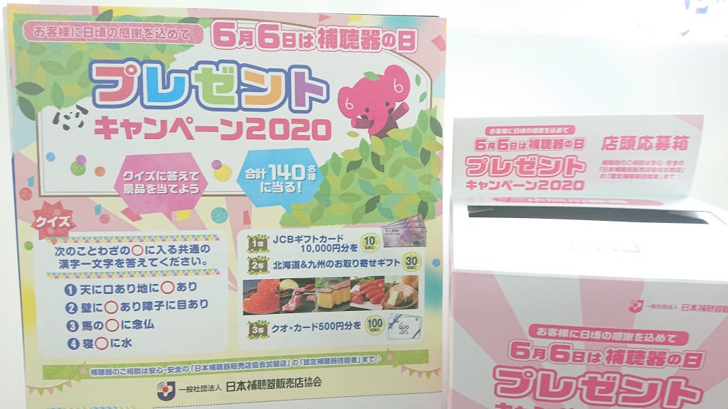 メガネのアイ加悦本店 店長田中です。毎年恒例の「補聴器の日キャンペーン」実施中!!応募締切は2020年6月30日(火)消印有効与謝野町の皆さま10,000円分の商品券抽選でプレゼントしちゃいますよぉ~※詳しくは店頭スタッフ又はお電話にて電話0772-43-0144... -