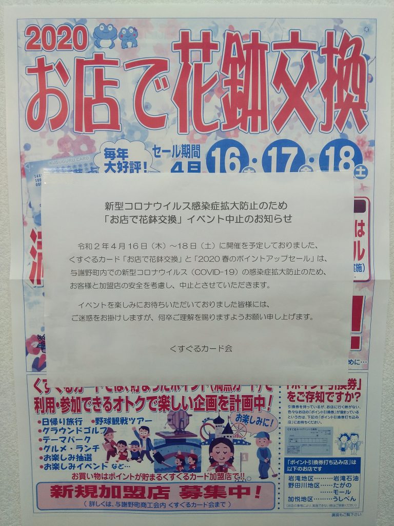 こんにちは。メガネのアイ加悦本店の堀です。令和2年4月16日(木)~4月18日(土)に予定しておりました「お店で花鉢交換会」と「2020春のポイントアップセール」はコロナウィルスの影響で中止とさせていただくこととなりました。楽しみにしていただいており... -