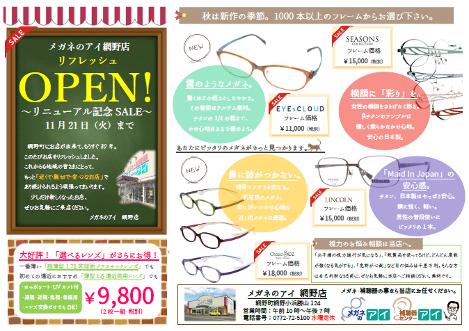 メガネのアイ網野店がちょっぴりキレイになりました(*・∀・)ノ゙
