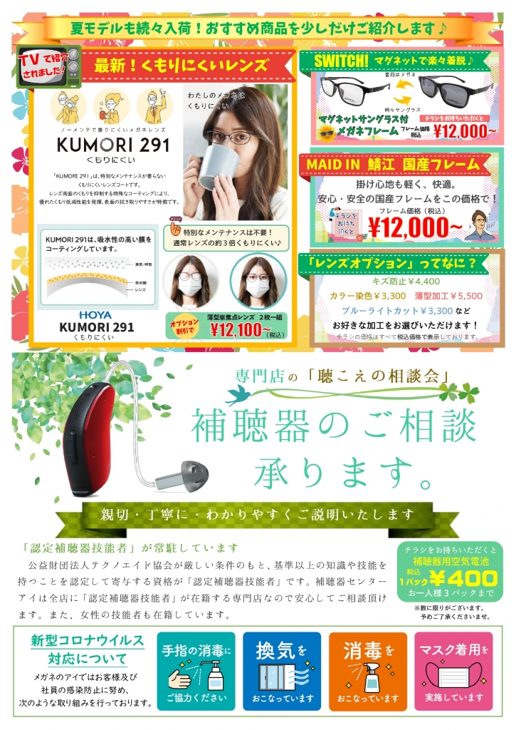 『KUMORI291』コートは、ノンストレスのくもりにくいレンズです。