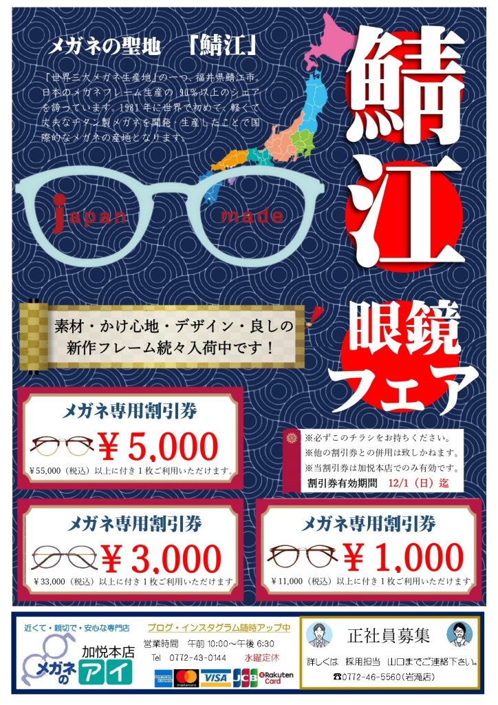 メガネのアイ/補聴器センターアイ加悦本店です(^○^)「鯖江 メガネフェア」を開催しております。ブログ画面提示で割引クーポンご利用できます(=^・^=)新規のフレームも続々入荷しております。お気軽に来店ください(*^-^*)メガネのアイ/補聴器センターアイ... -