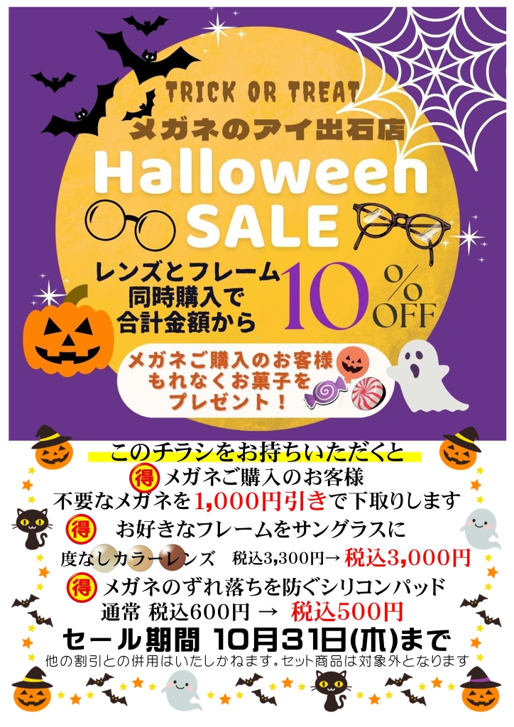 いつもお世話になっております。「メガネのアイ」「補聴器センターアイ」出石店です。10月に入り朝晩は驚くほど涼しくなりましたね。まだまだ日中は暑い日もありますので体調管理にご注意ください。早速ですが、10月のセール案内になります。是非この機会... -