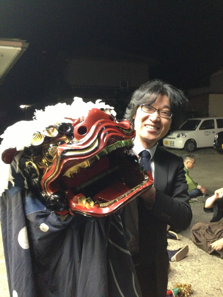 メガネのアイ 加悦店 店長田中です。加悦谷祭りいいですねぇ~!(^^)!貴重な体験をいたしました!!神楽保存会の皆様ありがとうございました。クイズです!獅子舞はだれでしょう~↓↓↓↓↓↓↓↓↓↓↓↓↓↓↓↓↓↓↓↓正解は私です! -