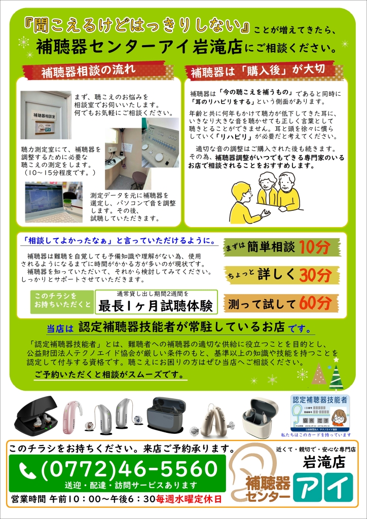 補聴器のご相談も、お気軽にどうぞ(^^♪