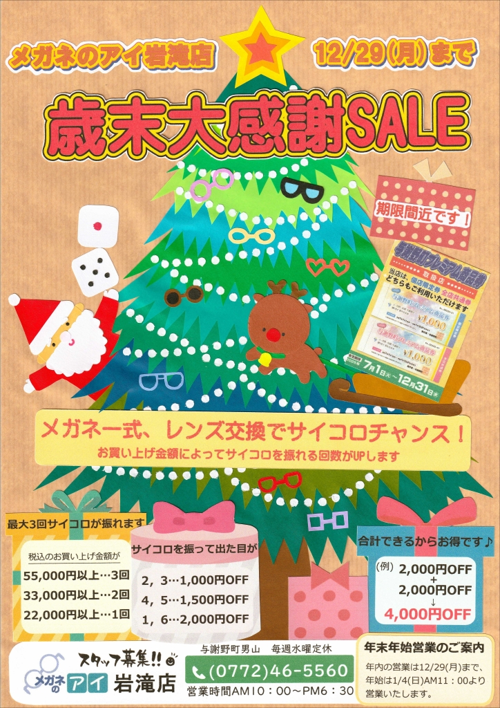 年内にメガネのお渡しご希望の方は、早めにお越しくださいね☆