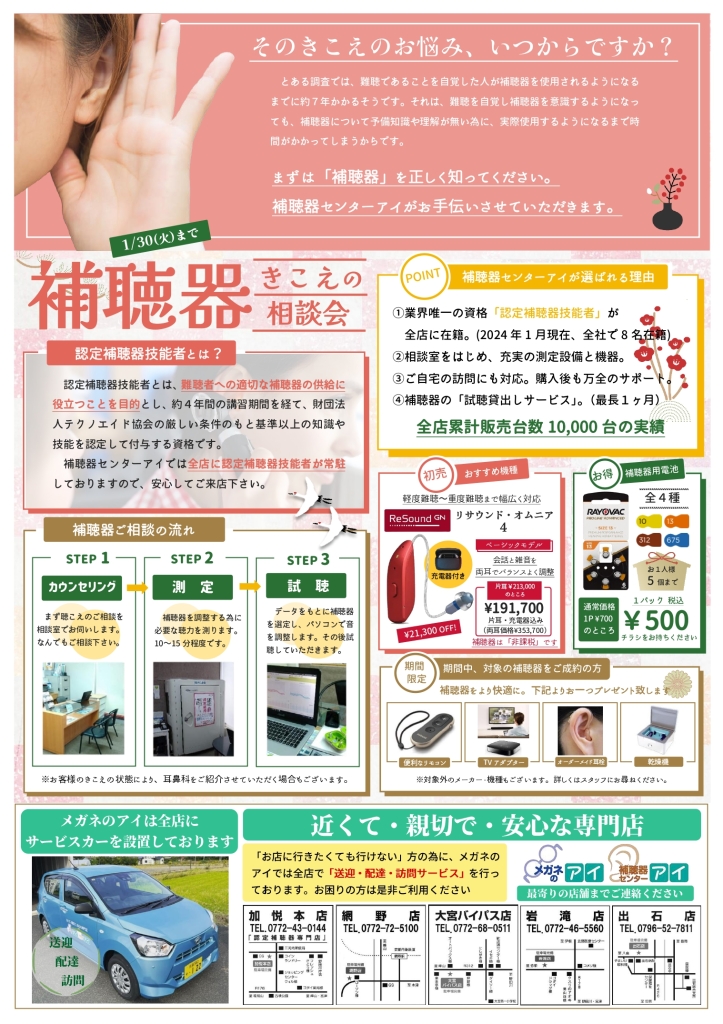 メガネ・補聴器のアイ岩滝店です。