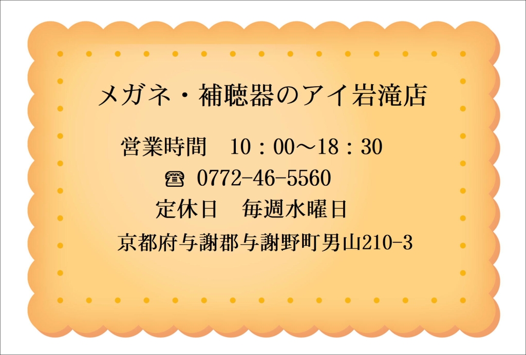 只今、岩滝店では、春の新生活応援セールを開催しています(*^^*) 18歳までの学生さんなら、さらにお得! 皆さまのご来店、心よりお待ちしています(´艸`*) 関連記事 秋の感謝セール☆開催 ☆半期決算セール 開催中☆ メガネの下取りセール始まりました☆☆☆ 年末年始営業のご案内 新春初売セール 開催 !! 岩滝店 メガネ与謝野町伊根町宮津市補聴器 URL Copied! URL Copied! おすすめの補聴器って? その3 くすぐるポイント5倍セール( *´艸`)