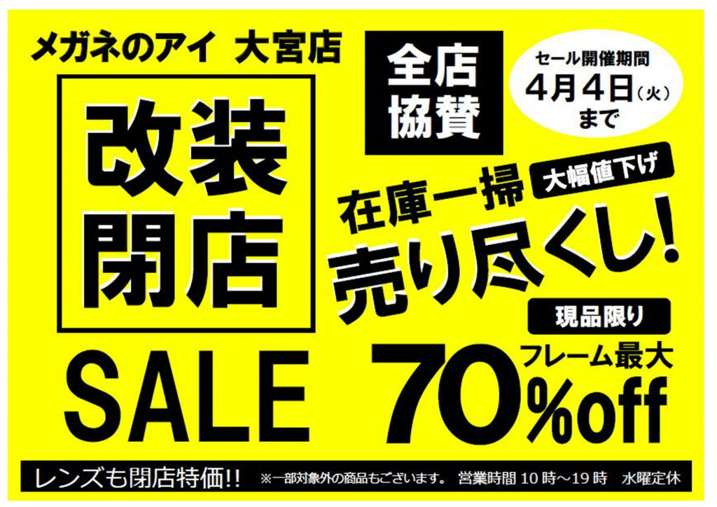『メガネのアイ大宮店 閉店・改装協賛セール』