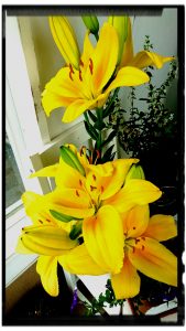 帰りの際、花をいただいたので早速、風除室に活けました(^o^)