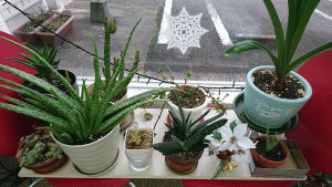 つぼみが出はじめたので、窓際の温かいところに移動したら