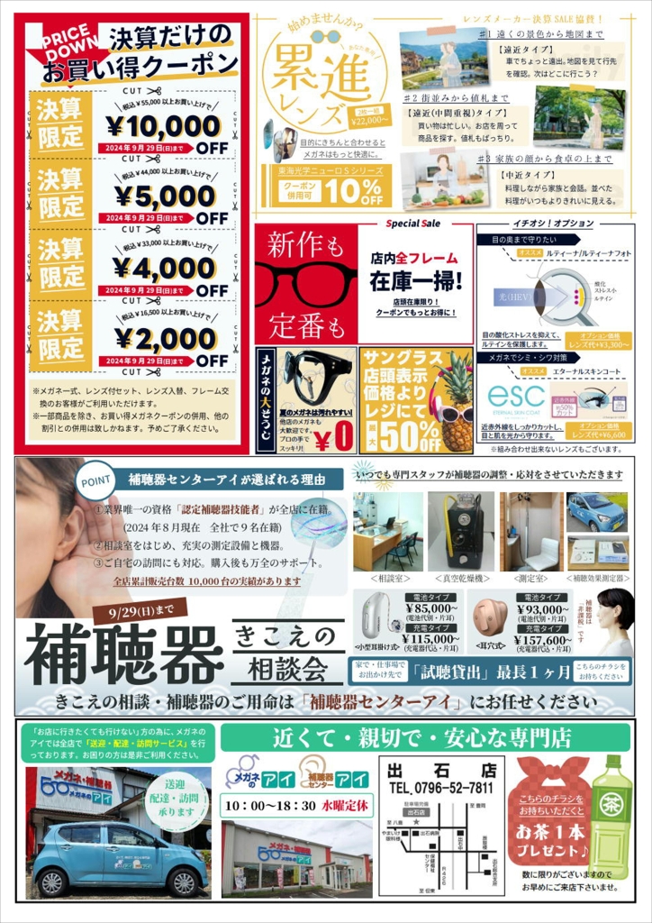 「メガネのアイ出石店」「補聴器センターアイ出石店」です。