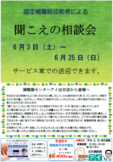 補聴器センターアイ出石店 補聴器・聞こえの相談会