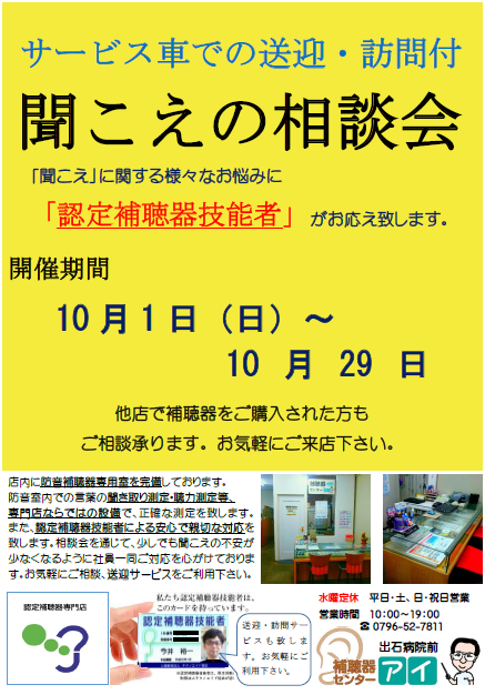 補聴器センターアイ出石店 10月『聞こえの相談会』