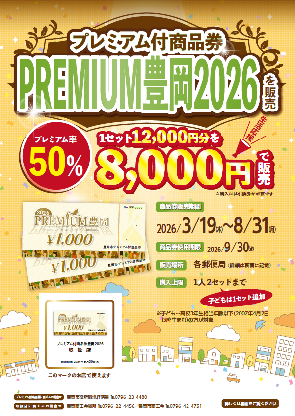 豊岡市プレミアム商品券取扱店 2026 3/16 出石店 2026年3月16日 いつもお世話になっております。 「メガネのアイ出石店」「補聴器センターアイ出石店」です。 豊岡市在住の方はご存知の方も多いと思いますが、 プレミアム付商品券PREMIUM豊岡2026 が2026年3月19日からスタートします。 もちろん当店でもご利用いただけます。 是非この機会にご利用のほどよろしくお願いいたします。 住所 豊岡市出石町福住1333-2(福祉ゾーン内) 電話番号 0796-52-7811(送迎・配達・出張いたします。) 営業時間 10:00~18:30 毎週水曜定休 関連記事 はばタンpay+第5弾 取扱店 5日間限定 歳末セール 年末年始休業のお知らせ 新春初売り 豊岡市プレミアム付商品券 出石店 URLをコピーしました! URLをコピーしました! 新レンズカラー「RayMaster435」登場! はばタンpay+第5弾 取扱店