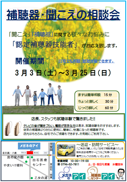3月の『補聴器・聞こえの相談会』のお知らせです。
