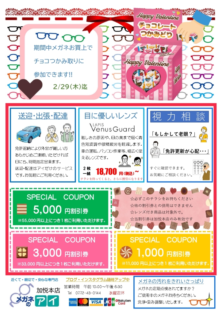 メガネ・レンズ購入のお客様はバレンタイン企画の「チョコつかみ取り」出来ます❤