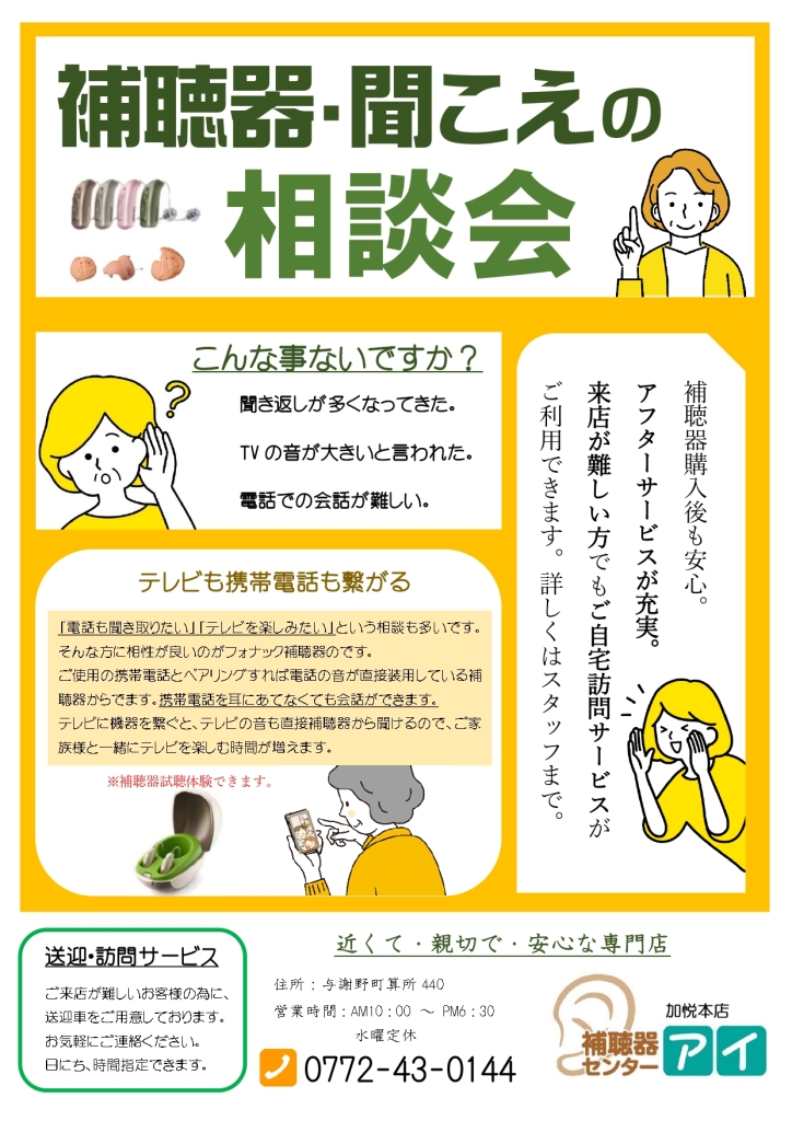 聞こえにくさはお一人お一人違いがあります。我慢せずにお気軽にご相談ください。