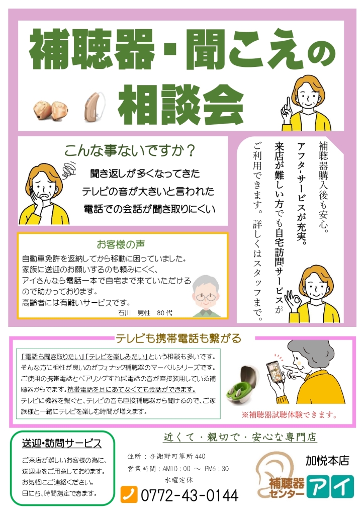 少しでも聞こえにくさを実感されておられる方はお気軽にご相談ください。