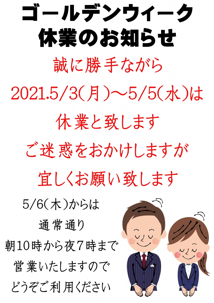 ゴールデンウィーク休業のお知らせ 2021 4/25 大宮店 2021.04.25 2021.04.25 いつもお世話になっております 京丹後市にあります メガネ・補聴器のアイ大宮店です 関連記事 ゴールデンウィーク休業のお知らせ 営業時間短縮のお知らせ 9月の臨時休業のお知らせ GW休業のお知らせ 大宮店 URL Copied! URL Copied! 眼鏡でアンチエイジングΣ(゚Д゚)その① 眼鏡でアンチエイジングΣ(゚Д゚)その②