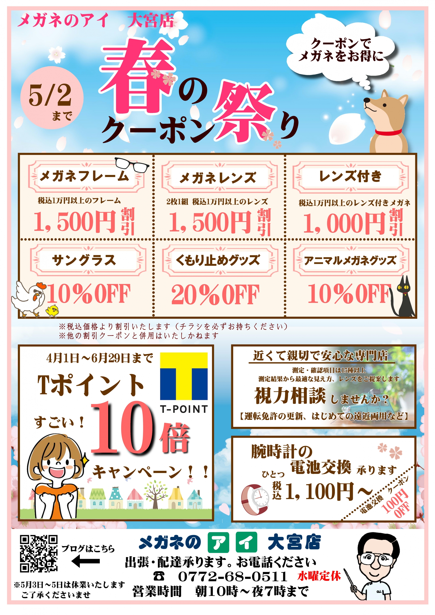 メガネのアイ大宮店 「春のクーポン祭り🌸」開催!! 5/2まで~(((o(*゚▽゚*)o)))