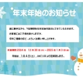 年末年始の休業期間は下記の通りです。