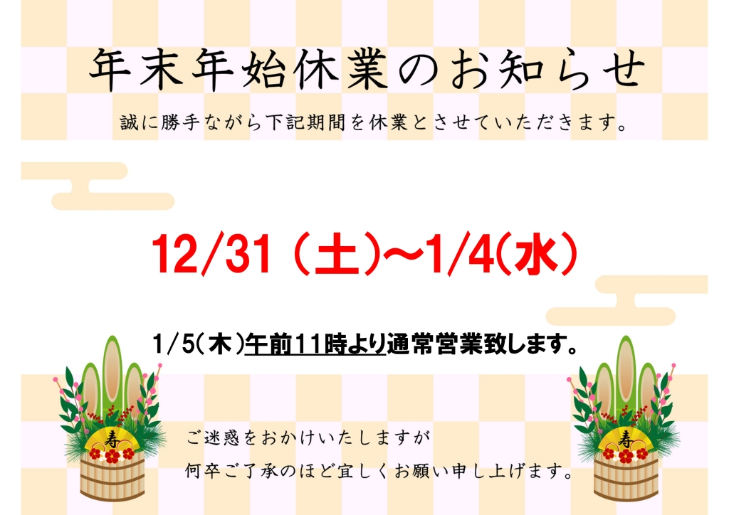 年末年始営業のご案内