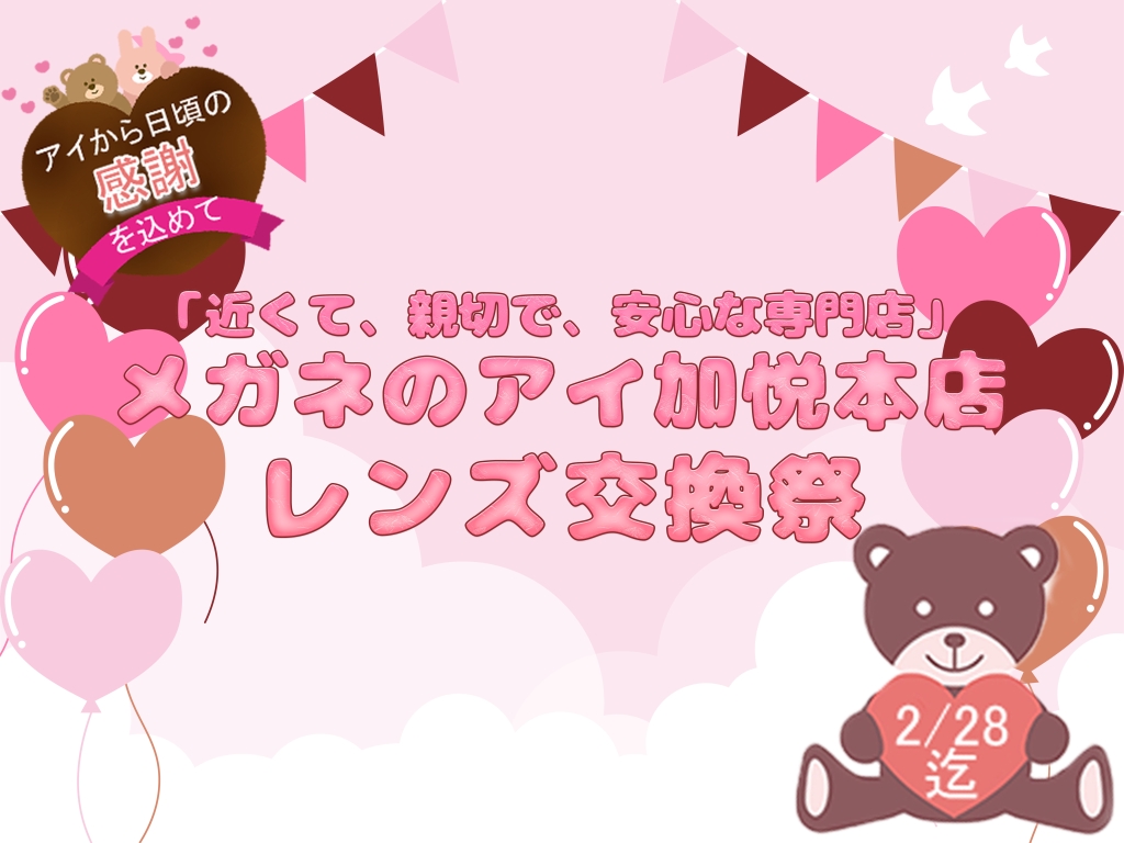 与謝野町の皆様こんにちは。メガネのアイ/補聴器センターアイ加悦本店です。年があけて、早くも1ヶ月が経過しました。。2月のセールのご案内です!!◎メガネ22,000円以上お買い上げ頂いた方に!¥3,000引き!!◎選べるレンズ(超薄型も選べます)¥11,880◎期間... -
